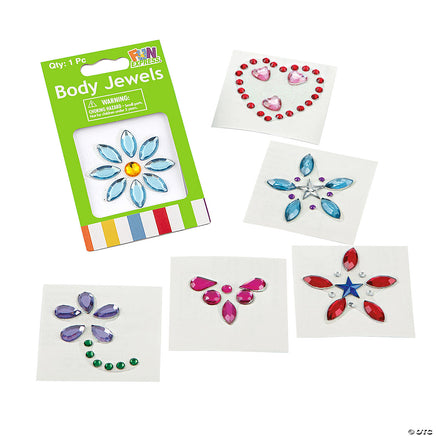 1 piece per display card. Self adhesive body jewels. Easy to apply and remove.