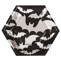 Silver Bats Halloween Hexagonal 8.25 Dessert Plates 8ct - Foil Stamping
