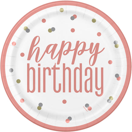 Add a pop of glam to your birthday bash with 9" Glitz Rose Gold Happy Birthday Dinner Plates—where elegance meets convenience!