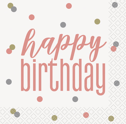 Birthday Rose Gold Glitz Happy Birthday Beverage Napkins 16 ct.